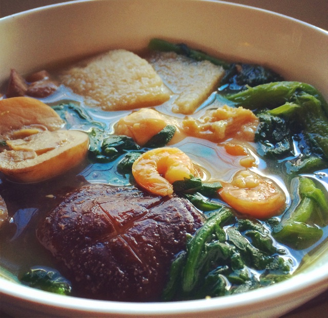 魔芋豆腐,茼蒿,香菇,还有昨天剩下来的牛油果版鸡肉虾仁蘑菇汤。60ml酱油如果一个人吃一下子就钠含量超标了,少放一点调料...