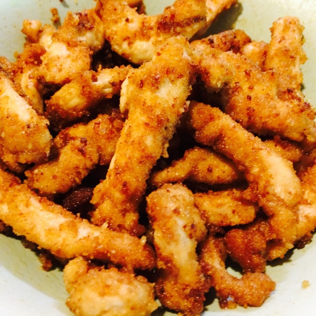 用了面包糠 撒了五香粉和白胡椒粉