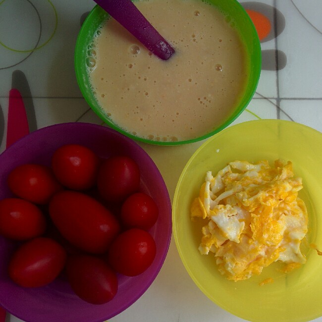 胡萝卜米豆浆+煎鸡蛋+樱桃番茄