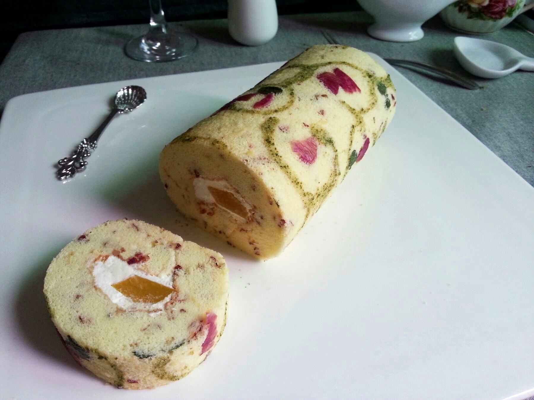 柔软像毛巾的玫瑰蛋糕卷,50克奶油太少了,挤变形(ˇˍˇ)