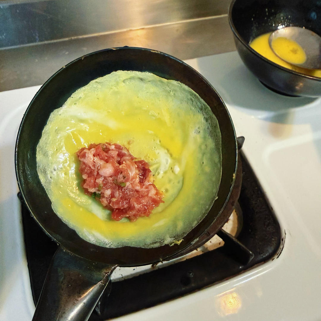 9颗鸡蛋、1台斤肉(600g),做了约60个蛋...