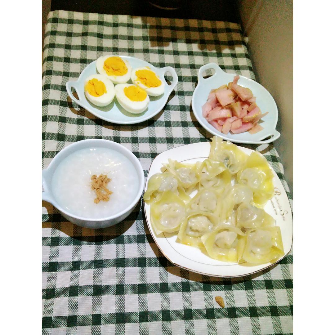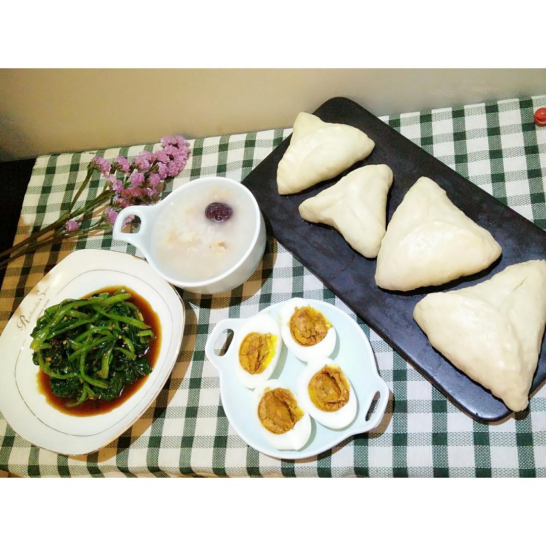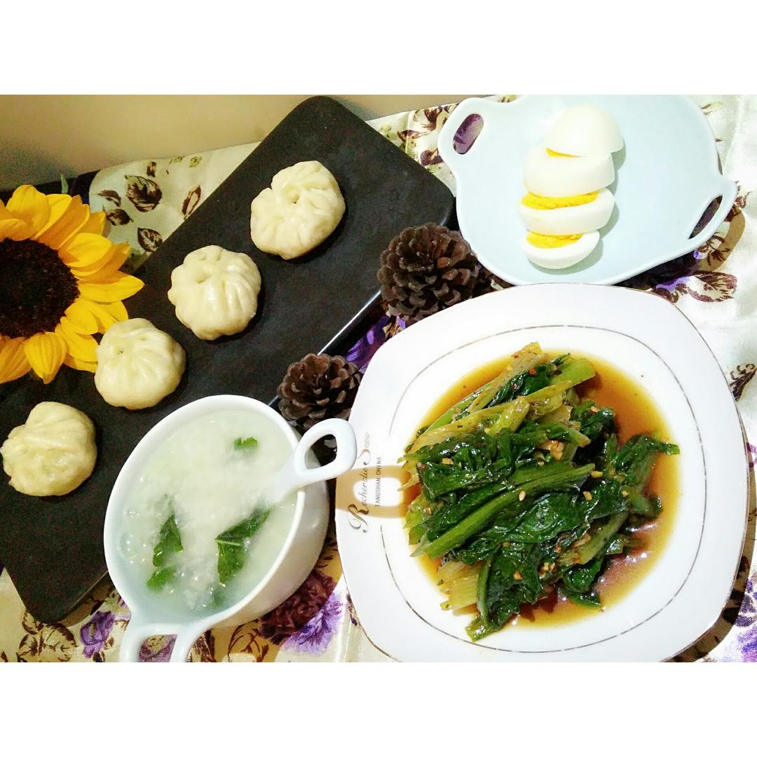 今天一家人的早餐:杂粮粥+白菜香...