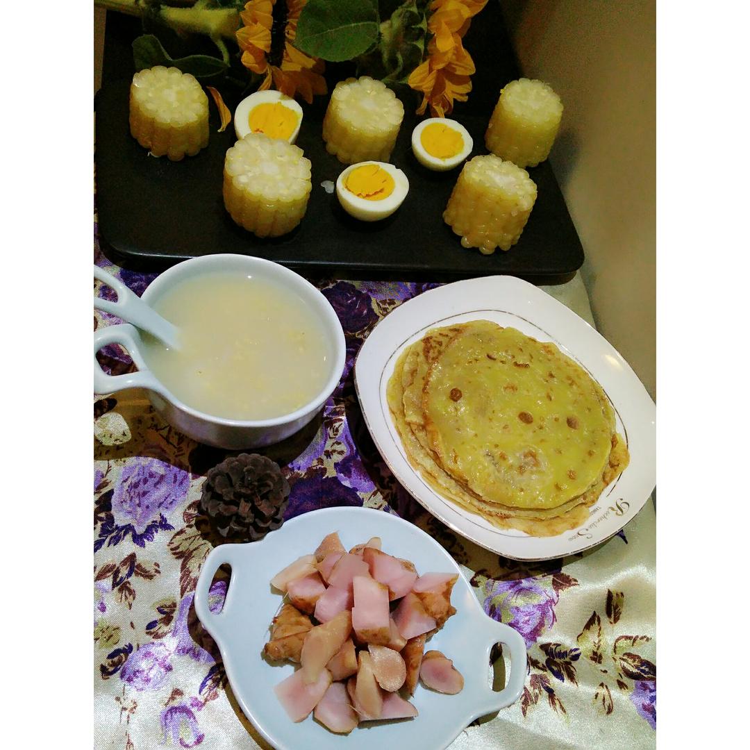 今天为女儿做的早餐-双重养胃“山药桂花粥配裙饼😋”