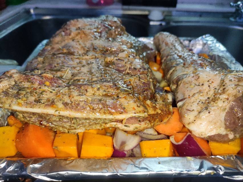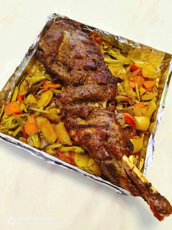 烤箱版,这次烤的比较大5.7斤,推荐大家烤羔羊前腿大概2-3斤。煨的时候用自己喜欢的香料就可以,我用了 洋葱...