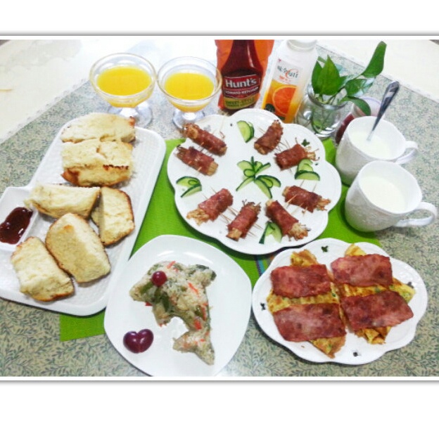 状态百出,程序全乱,深呼吸,深呼吸~~52期早餐牌:烤培根金针菇卷+黄瓜蛋饼+椰香面包块...