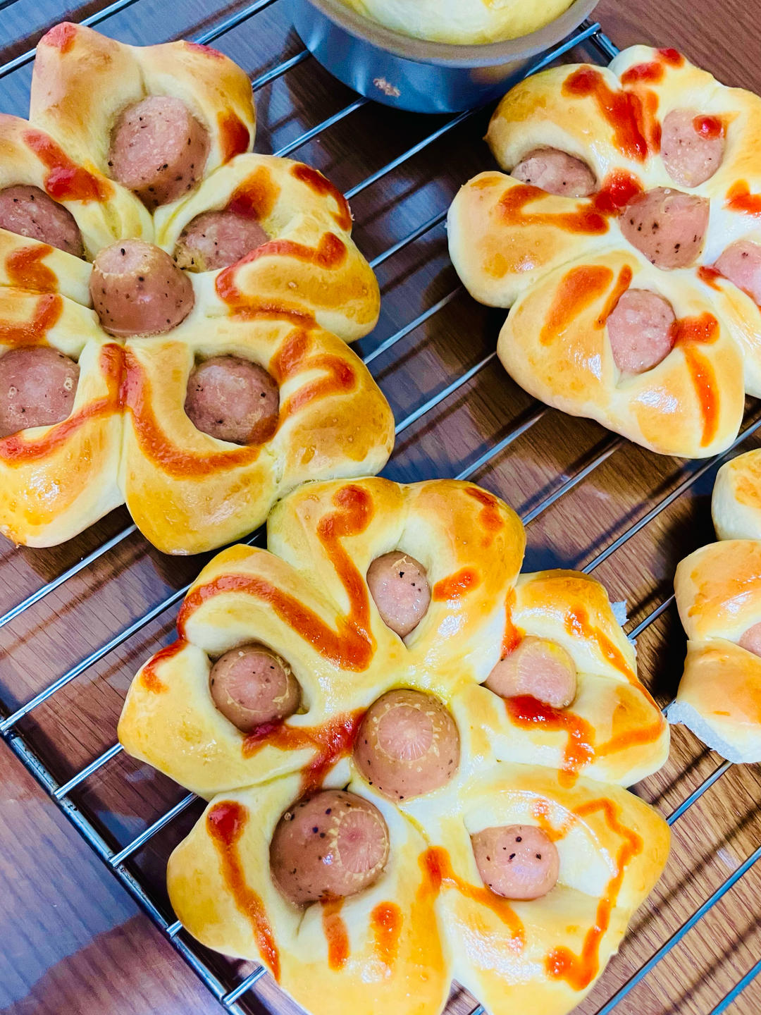 松软可口的香肠面包比外面卖的好吃,后悔没有多做点。