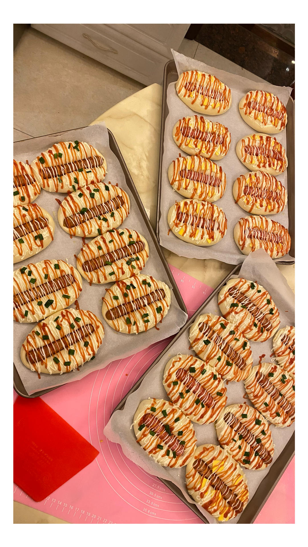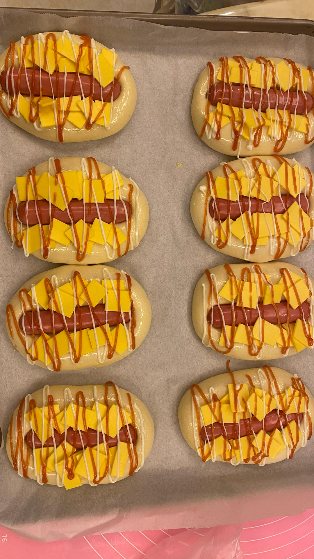 笑死了🤣配方是可以的,应该先刷蛋液再挤番茄酱那些的,结果我搞反了,香肠没压好,烤的时候香肠被挤出来了🤣