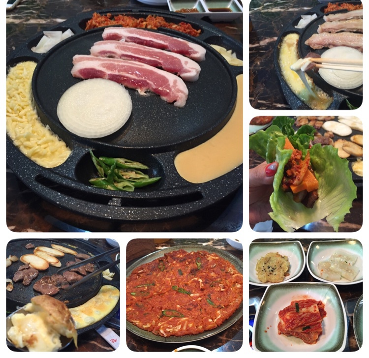 中午和闺蜜吃一直好奇的“芝士烤肉”,很有趣的锅很有趣的吃法。韩式烤五花肉和牛舌蘸烤过的芝士酱,别...