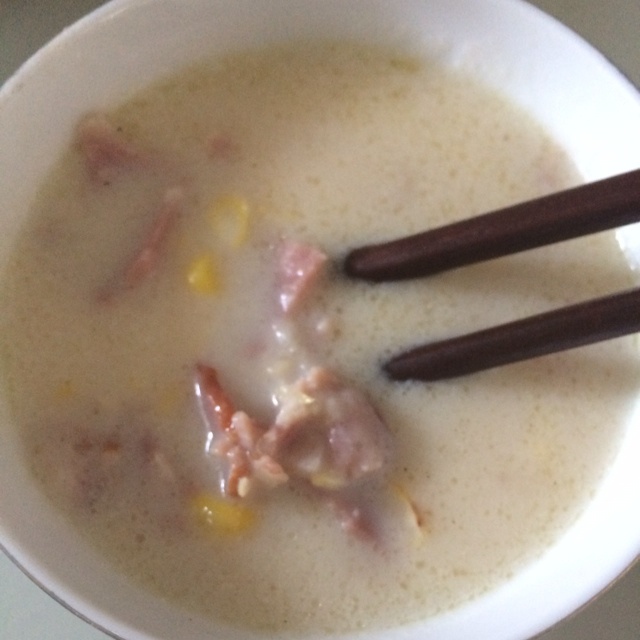 怕胖,用玉米油替代黄油,刚好没火腿,换成培根味道也不错!加了一些牛奶,感觉更滑!