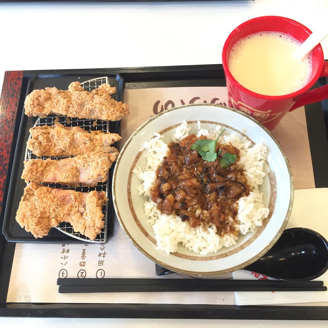 永和豆浆配卤肉饭、椒盐鸡排