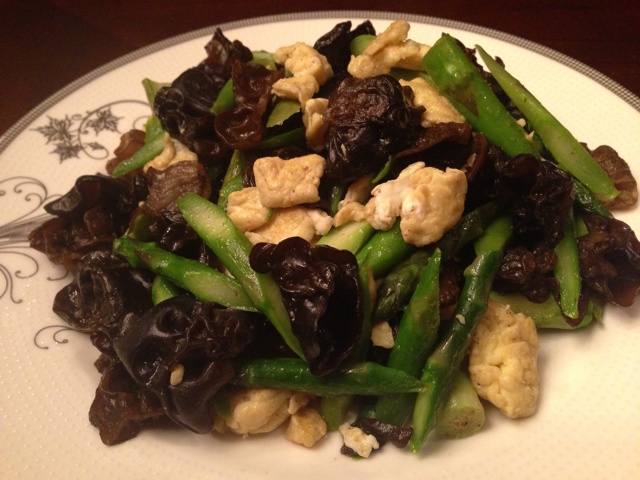芦笋、木耳炒鸡蛋