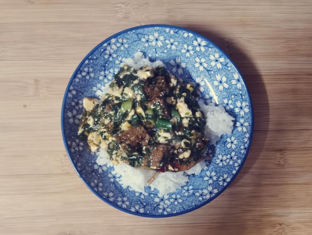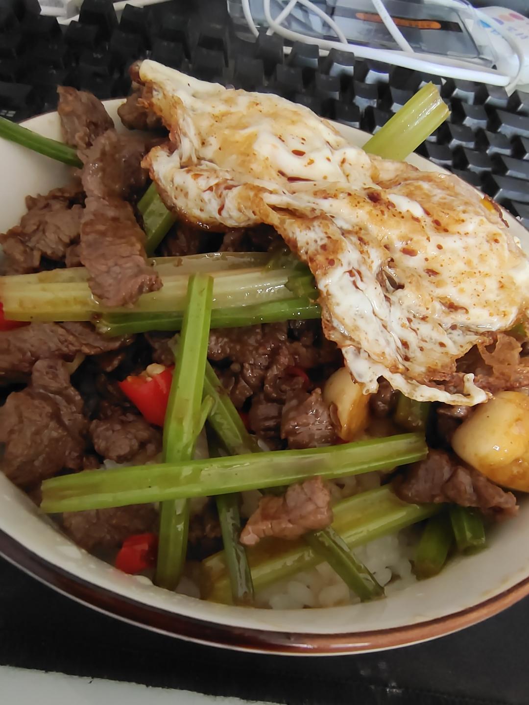 芹菜牛肉盖浇饭+鸡蛋