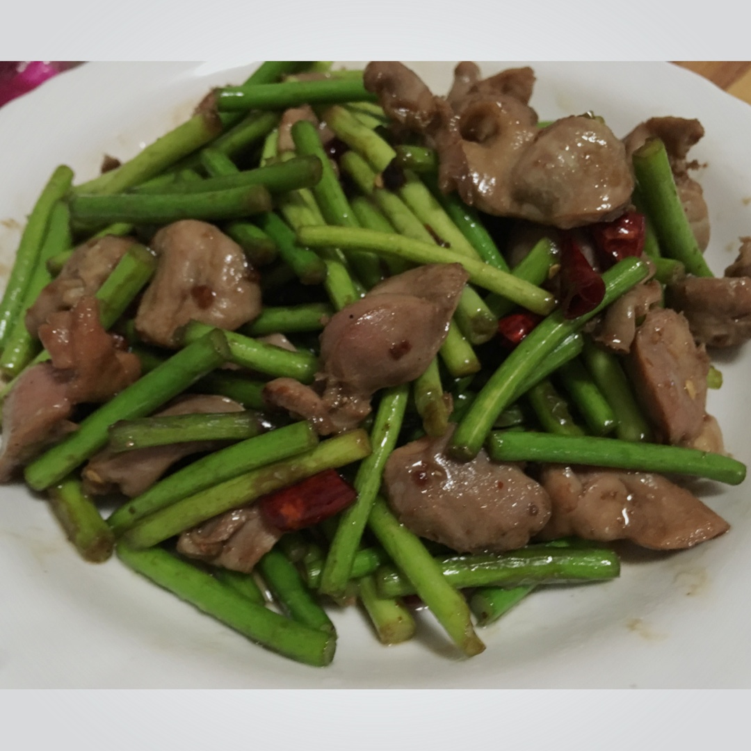 蒜苔炒鸡胗