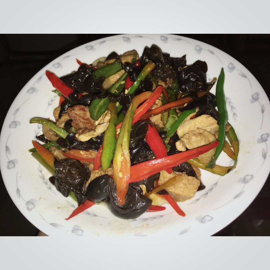 木耳小炒肉,杭椒有点辣