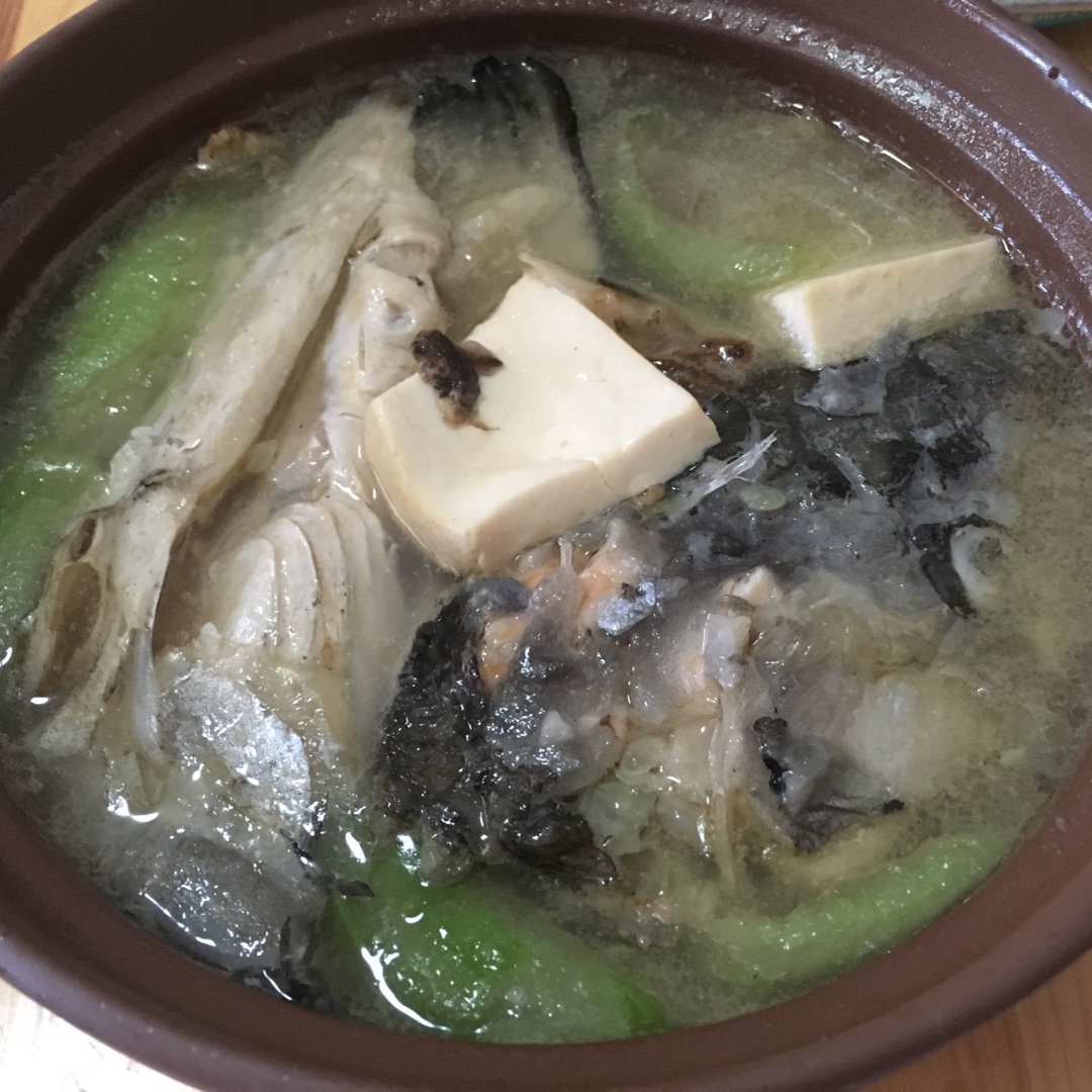 三文鱼头丝瓜豆腐汤