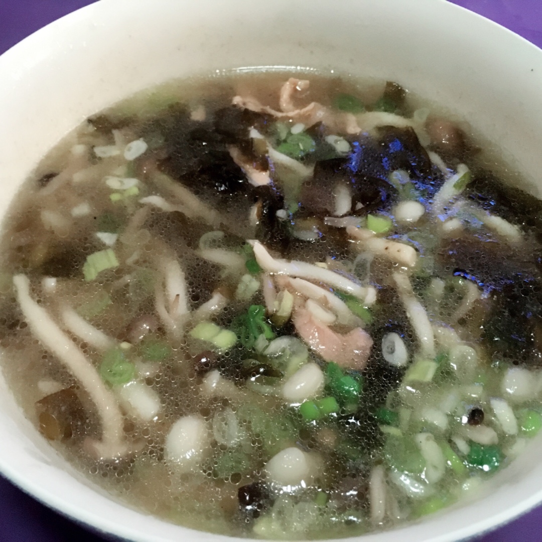 海鲜菇紫菜肉片汤