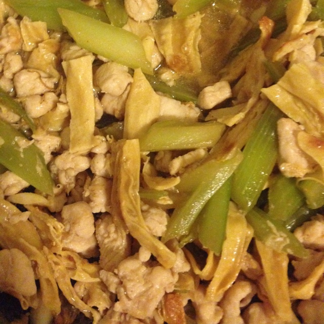 我用的是鸡胸肉,咸淡适中,菜嫩肉香,味道美极了,不亚于五花肉。而且腐竹泡了2个小时就发起来了,我真是天才! #晚餐•20...