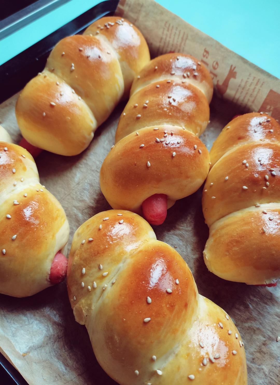 因为我宝贝儿要吃肉松面包,对于我这个烘焙新手,能做成个卷实属不易。幸好味道还行。