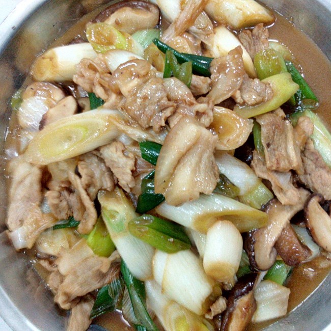 大葱香菇炒肉片