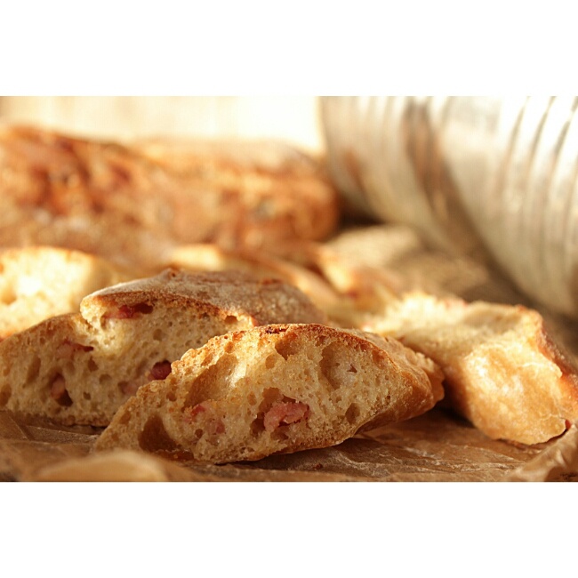 混搭德姐的poolish法棍和培根法棍。从前天晚上准备酵头,到今天下午从冰箱拿出来,每一步都还挺认真的.....