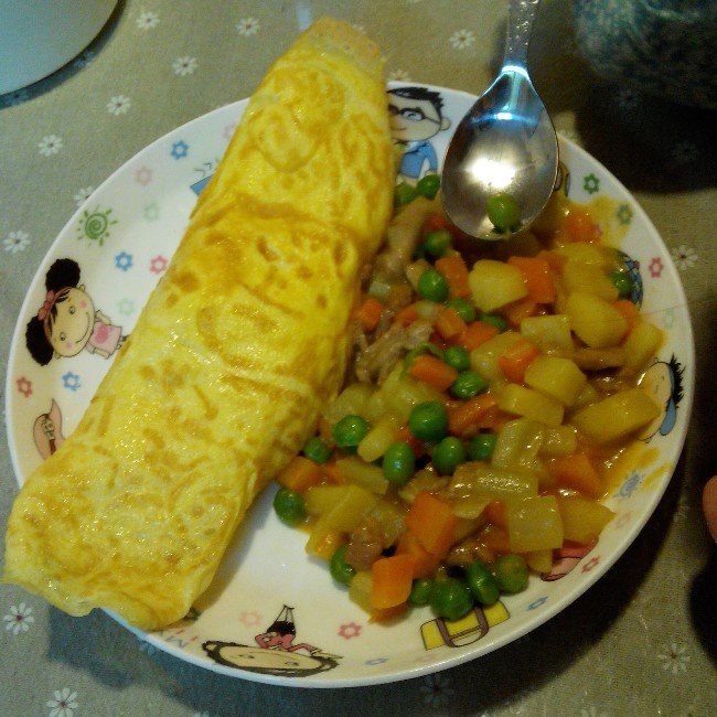蛋包饭搭上咖喱土豆还不赖