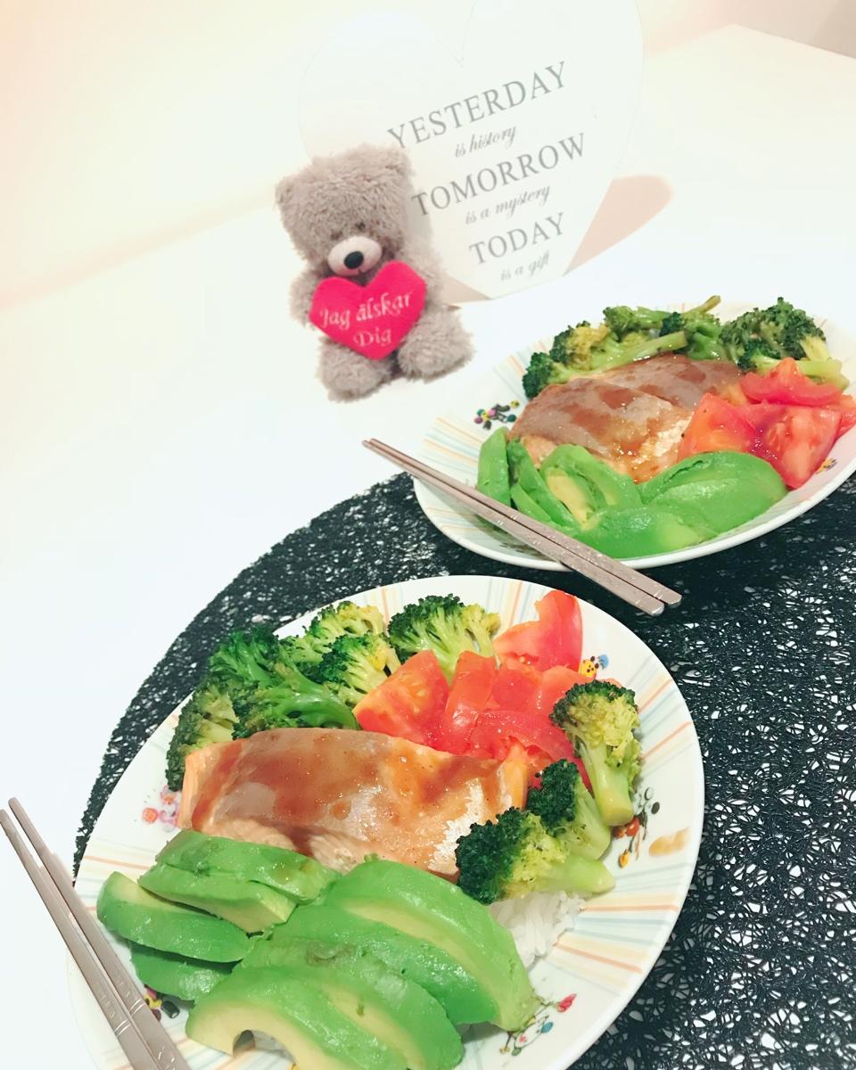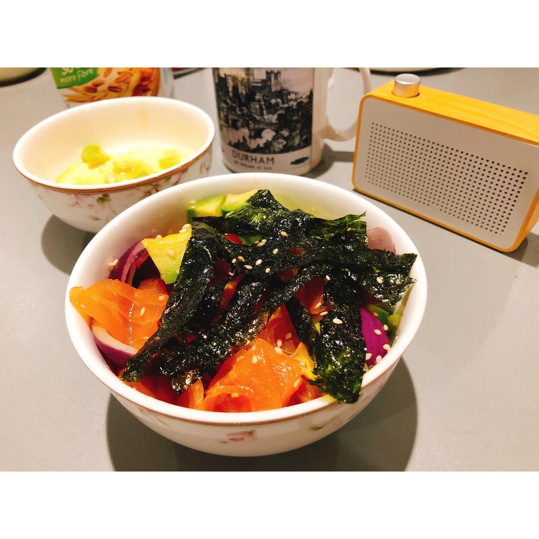 #三文鱼牛油果拌饭...