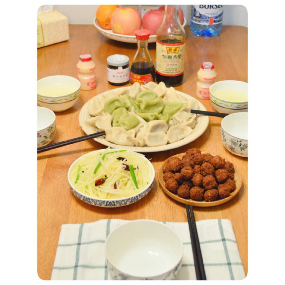 冬至夜,孩子爸回来了,一家三口吃饺子~~Y(^_^)Y
