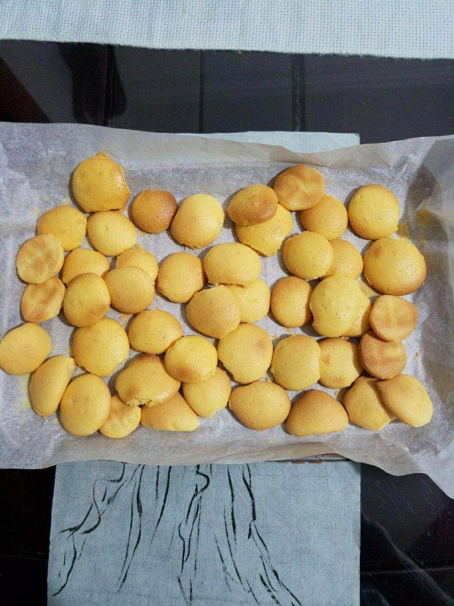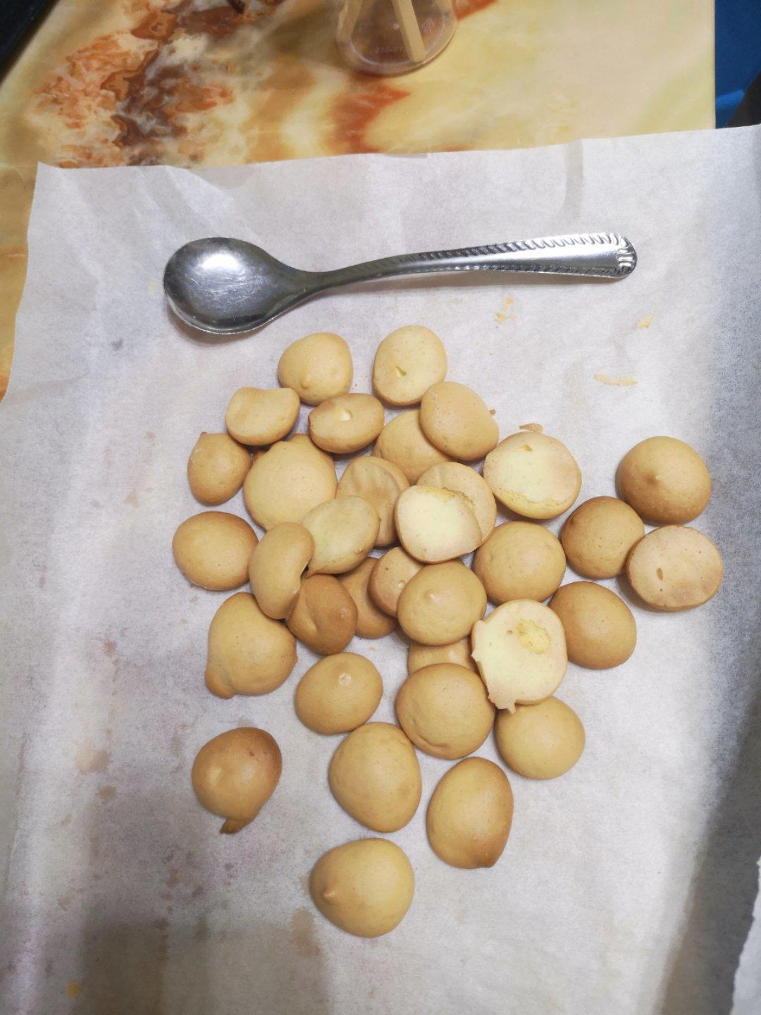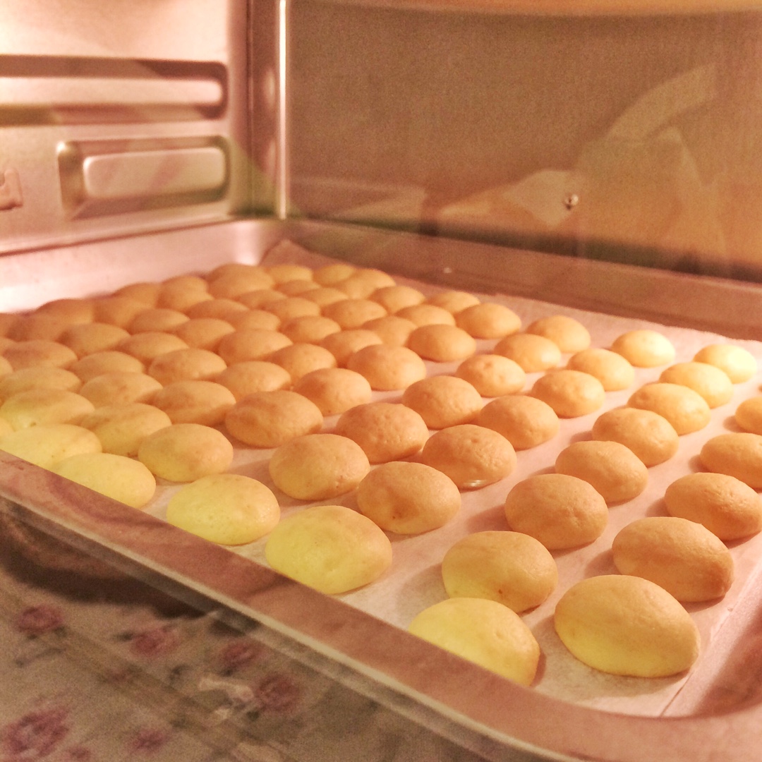很好吃的小饼干,奈何烤箱太小,鸡蛋用了两个蛋黄,半个蛋清,其他食材减半,第一盘挤得还好,后面一盘就消泡了,很多的孔。