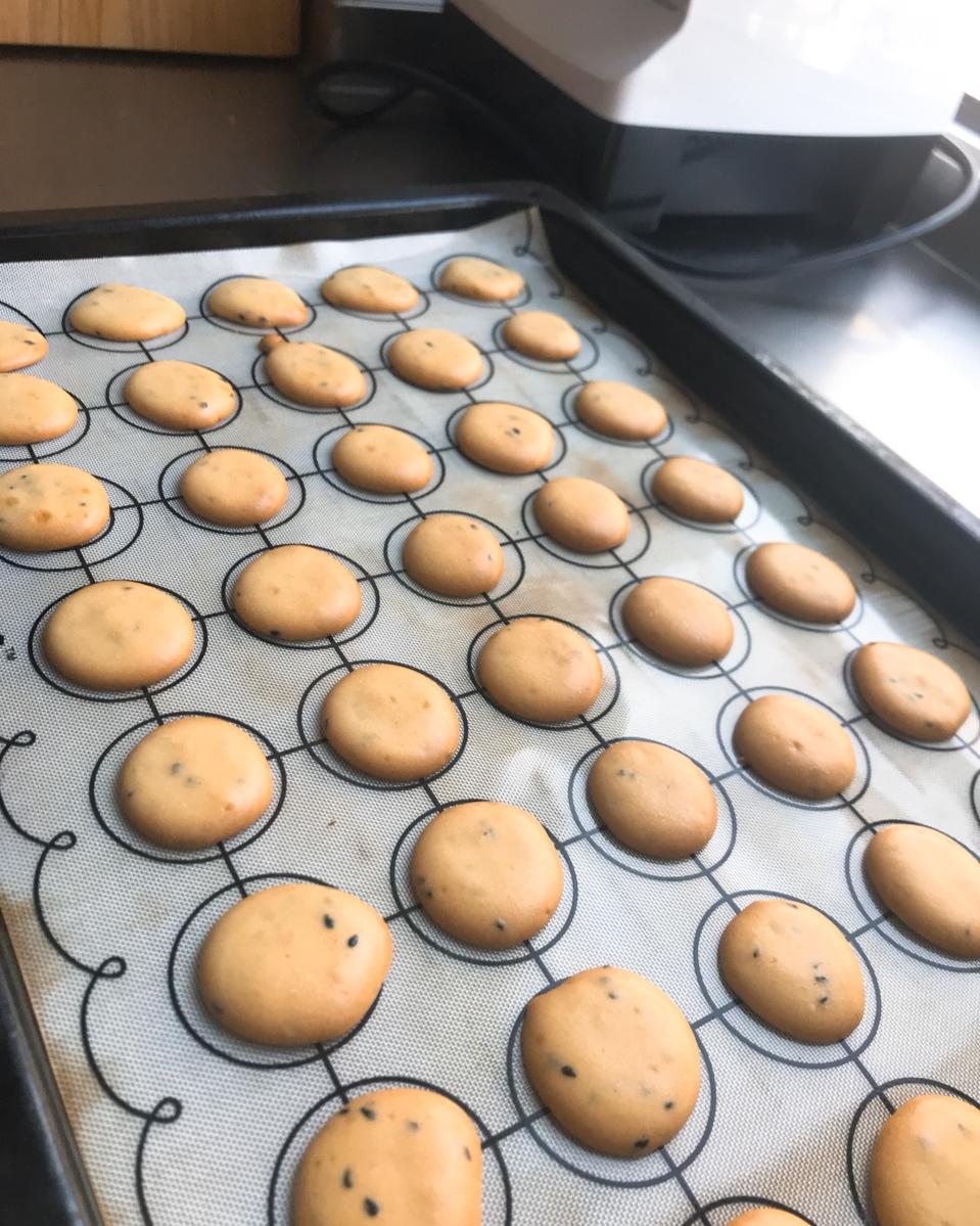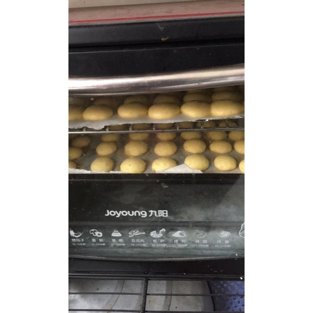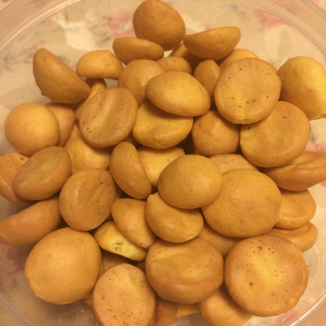 很好吃的小饼干,奈何烤箱太小,鸡蛋用了两个蛋黄,半个蛋清,其他食材减半,第一盘挤得还好,后面一盘就消泡了,很多的孔。
