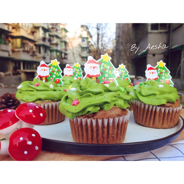 我想我跟奶油不是好朋友,没打发到位变得塌塌的,下了超多抹茶粉才有这样的绿色,我的心啊,痛的一抽一抽的……但是抹茶的微苦配...