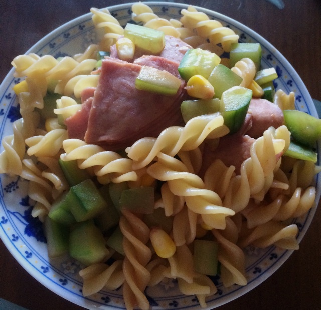 火腿黄瓜海鲜酱意面,大冬天就是懒,在家只能做做快手的东西,吃饱看书去咯! #午餐•2015年2...