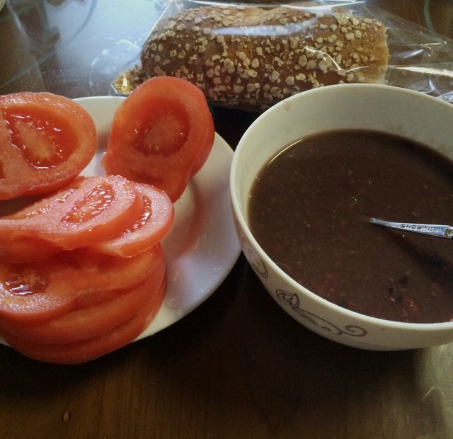 红豆红枣杂米汤、面包、番茄、还有没在镜头里的牛奶 #早...