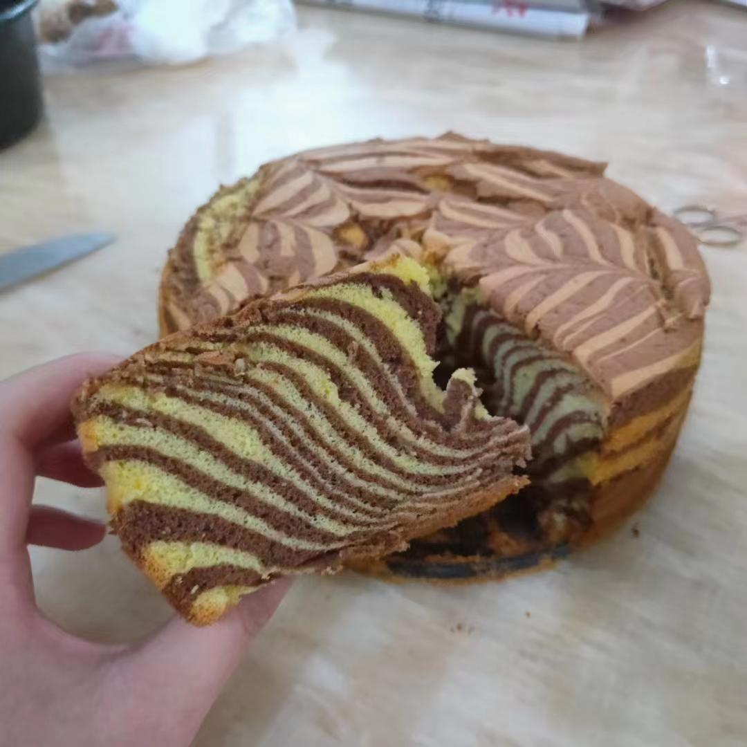 #可可戚风斑马纹蛋糕#