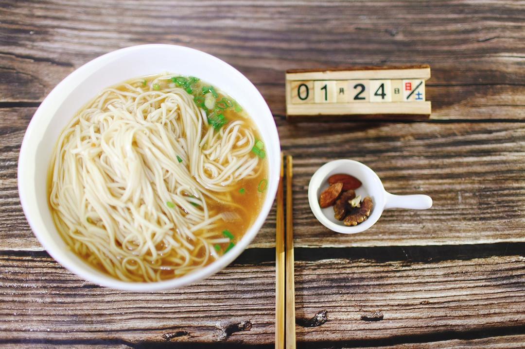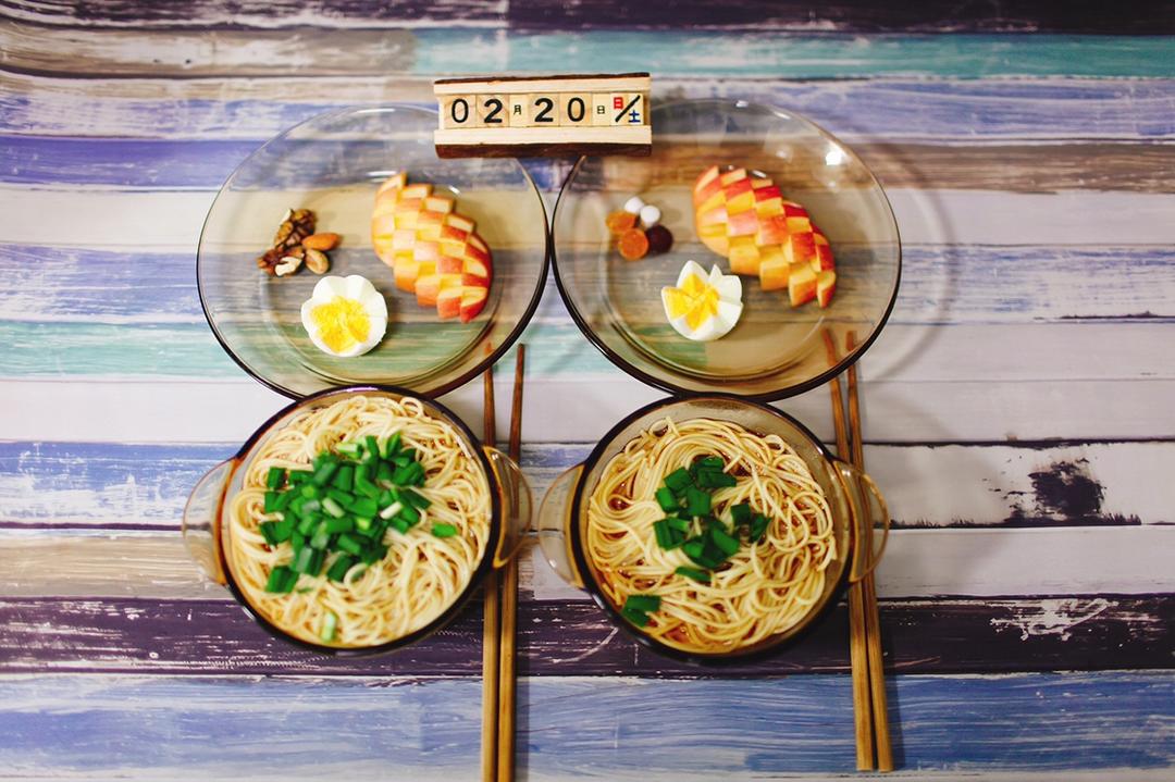 刘先生:一碗阳春面➕坚果➕鸡蛋🥚