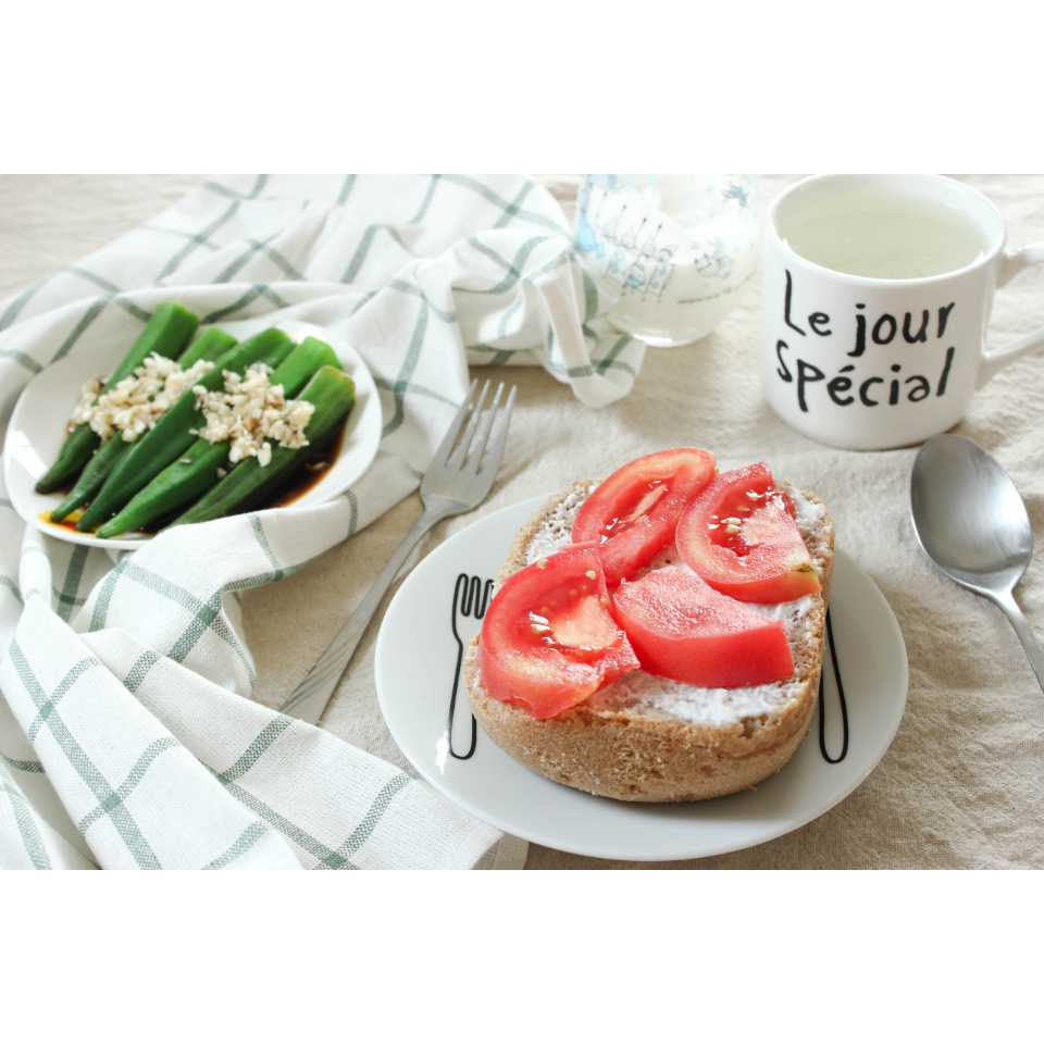開放式三明治 蒜末秋葵 檸檬水 酸奶