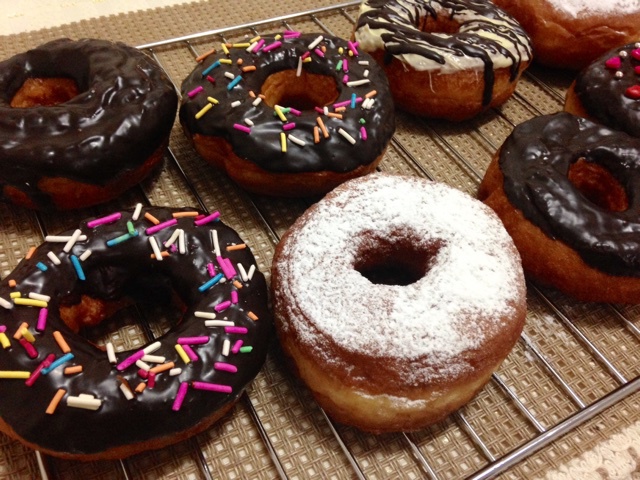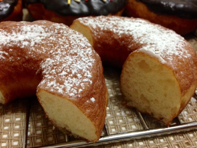 今天终于拔草啦做了甜甜圈,揉面真是个体力活,连揉再摔的,效果还不错,就是擀厚了,快要变成巨无霸了,模具也不给力,中间的小...