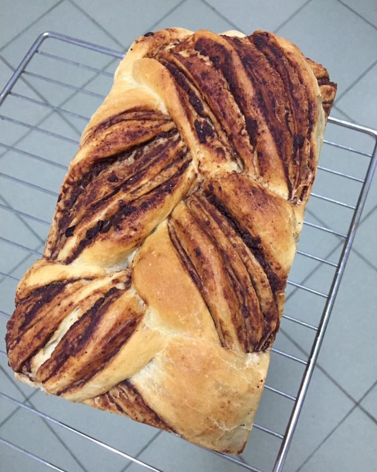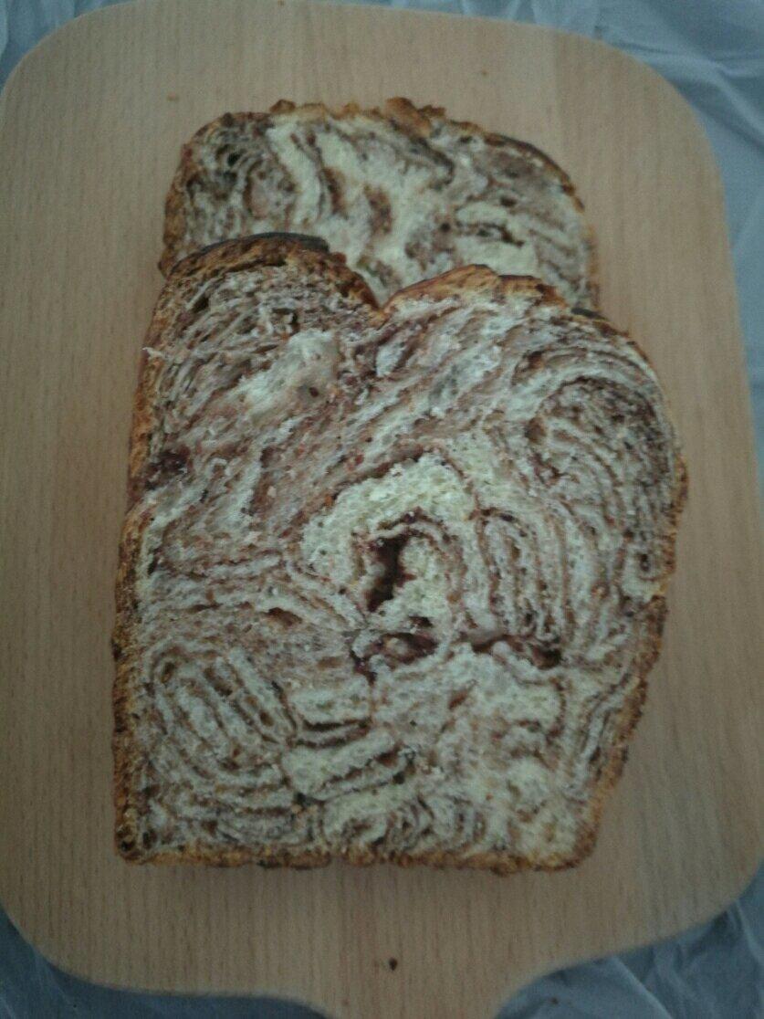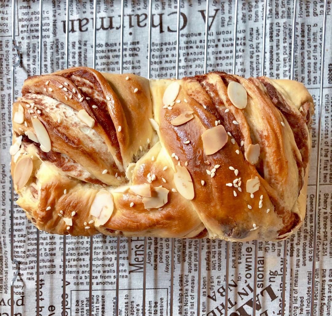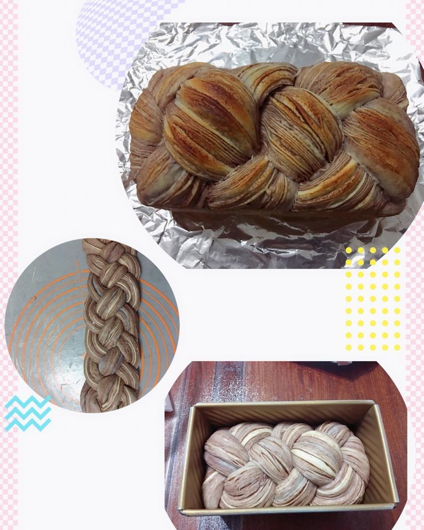 第一次做,豆沙大理石吐司,味道很好,就是不太会编辫子!