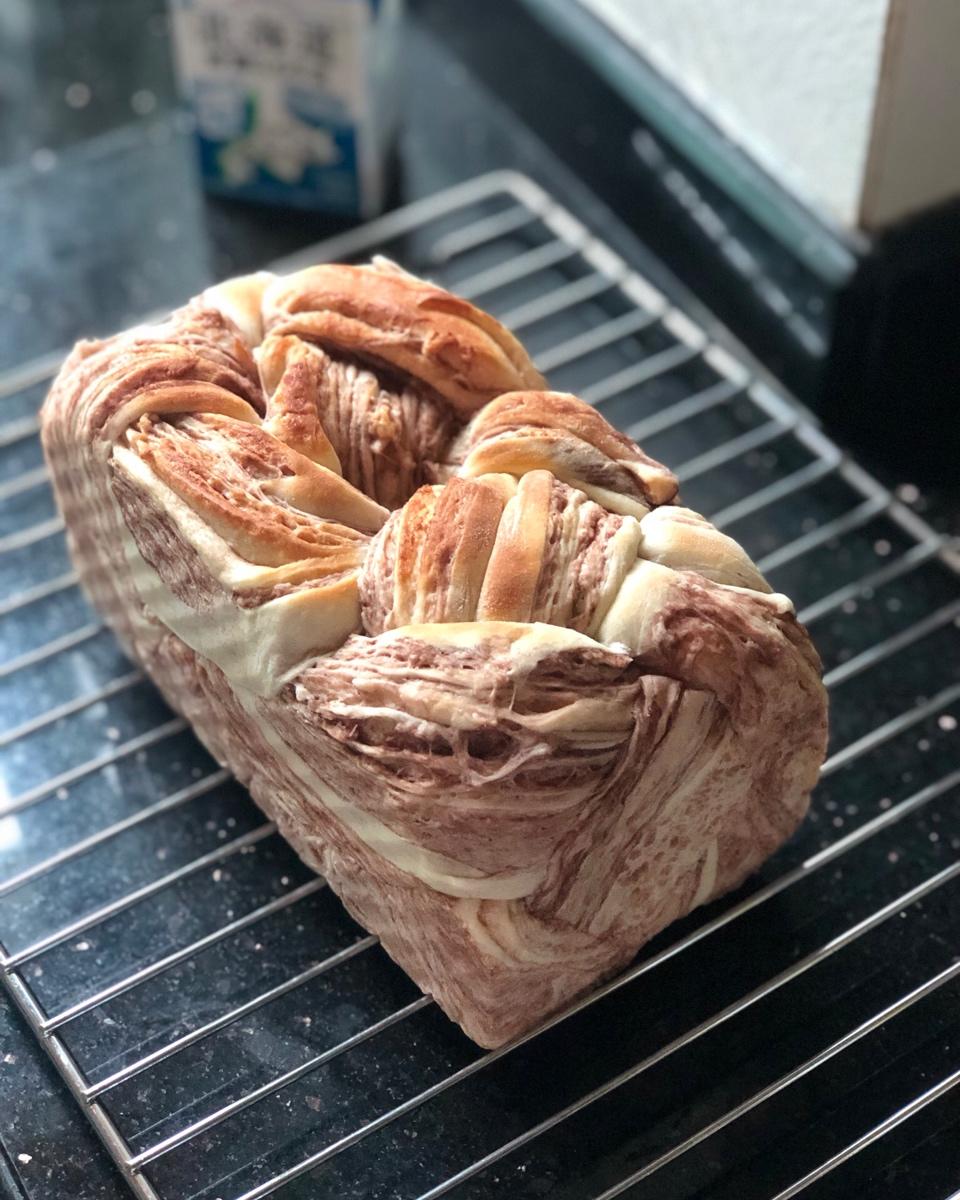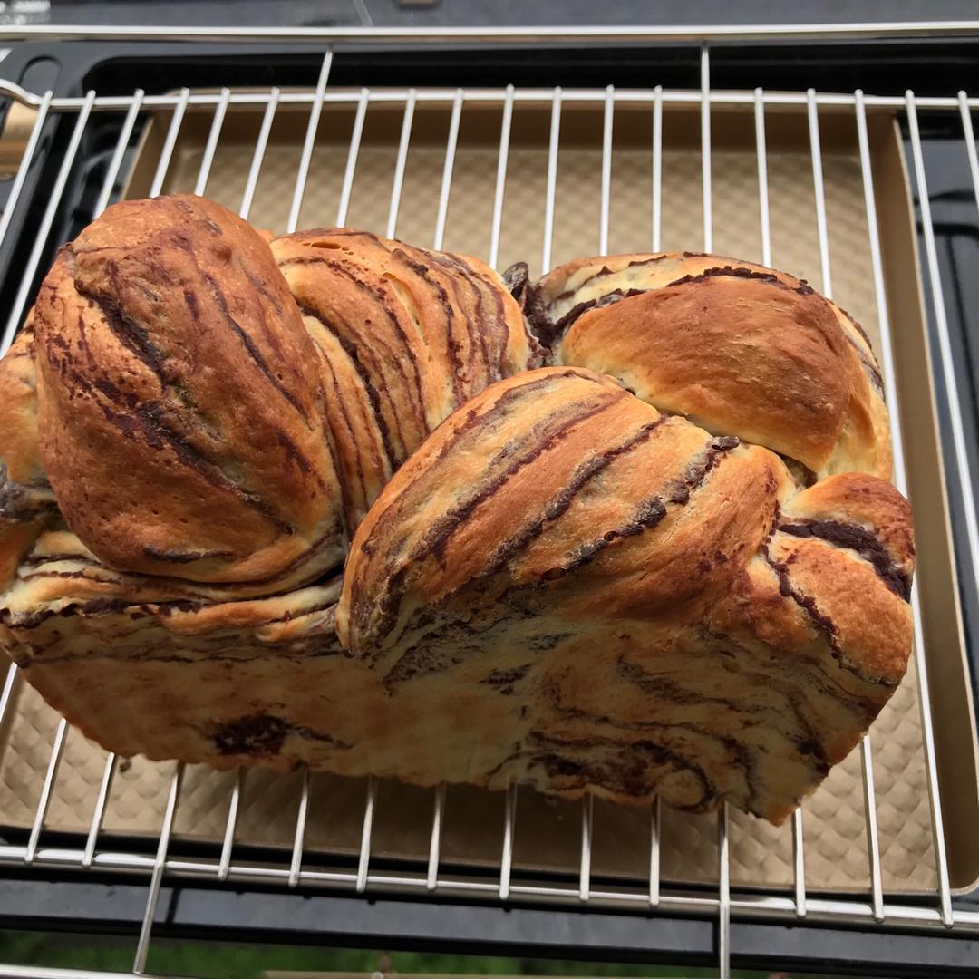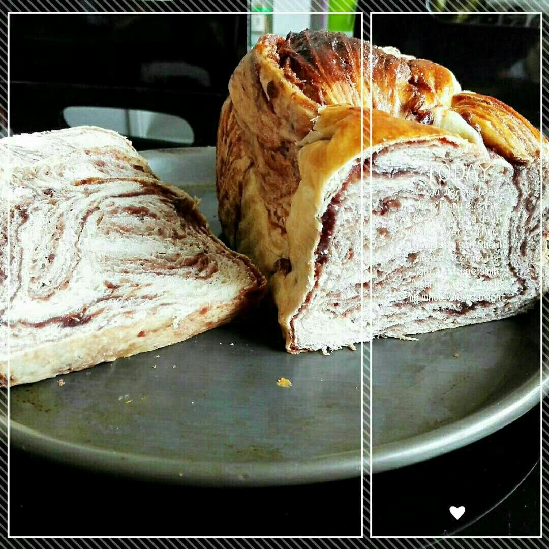 第一次做,豆沙大理石吐司,味道很好,就是不太会编辫子!