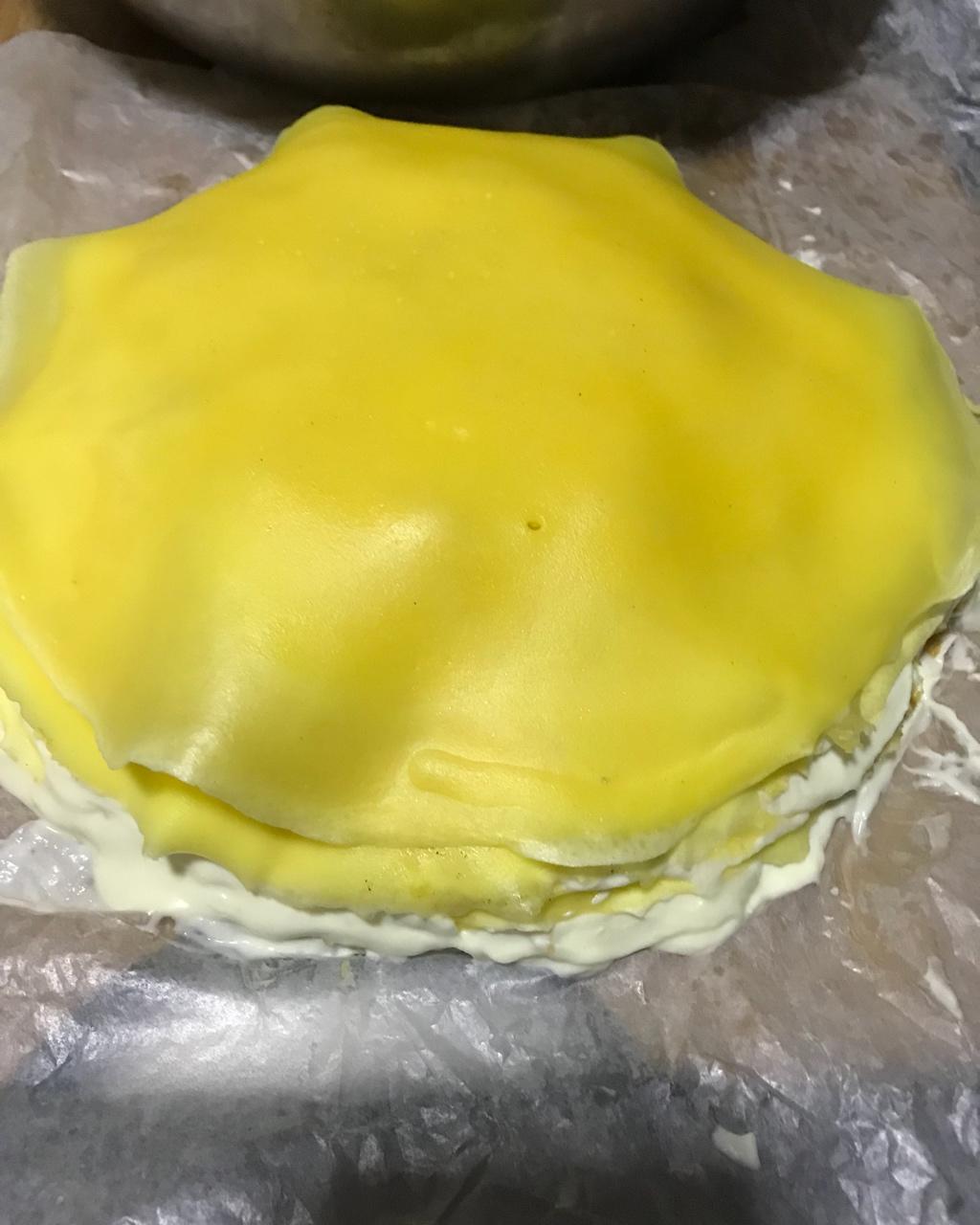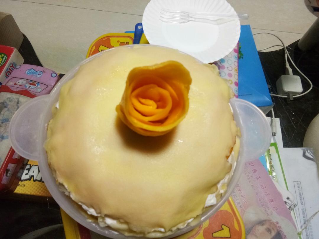 今天中午开始做的芒果千层蛋糕,晚上就可以了,很不错喔!拍照技术不好😊