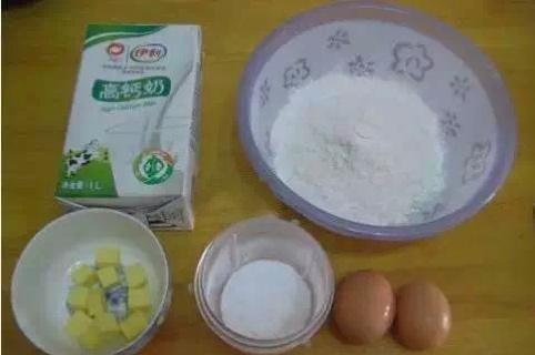 1.首先我们要做千层蛋糕里面的班戟皮,先准备好以下材料...