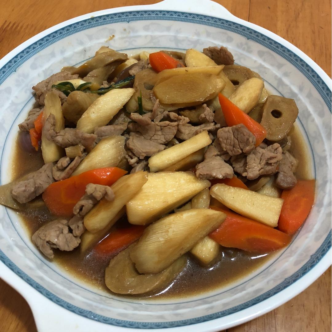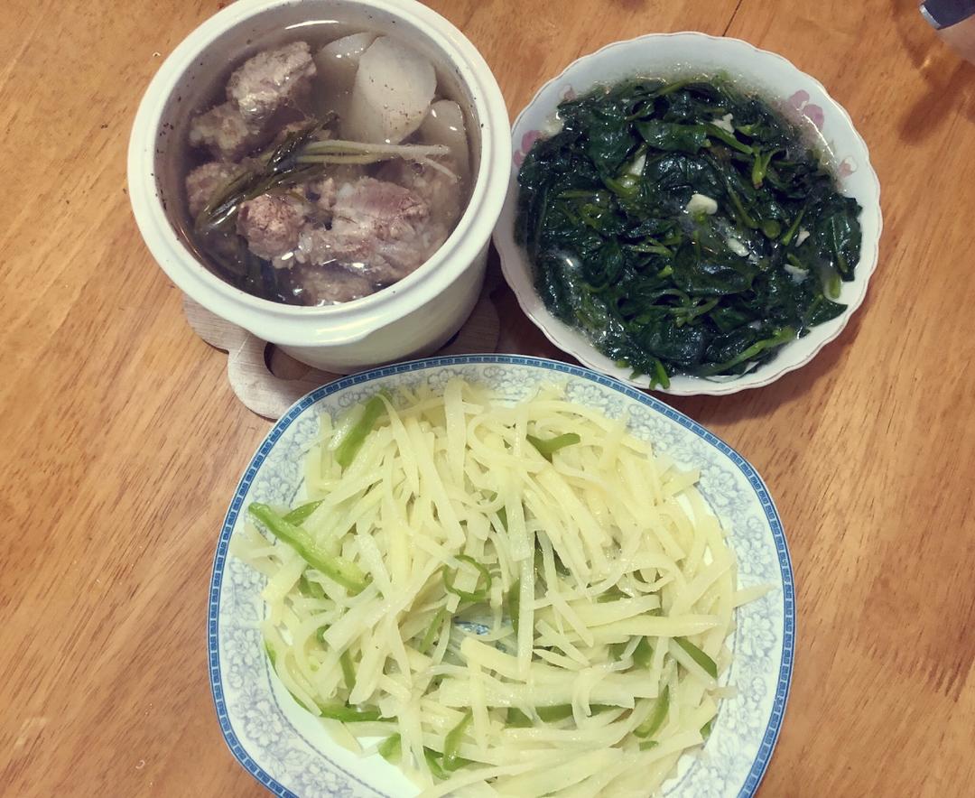红烧肉烧土豆🥔、蒜蓉木耳菜🌱、胸柿蛋汤🍅