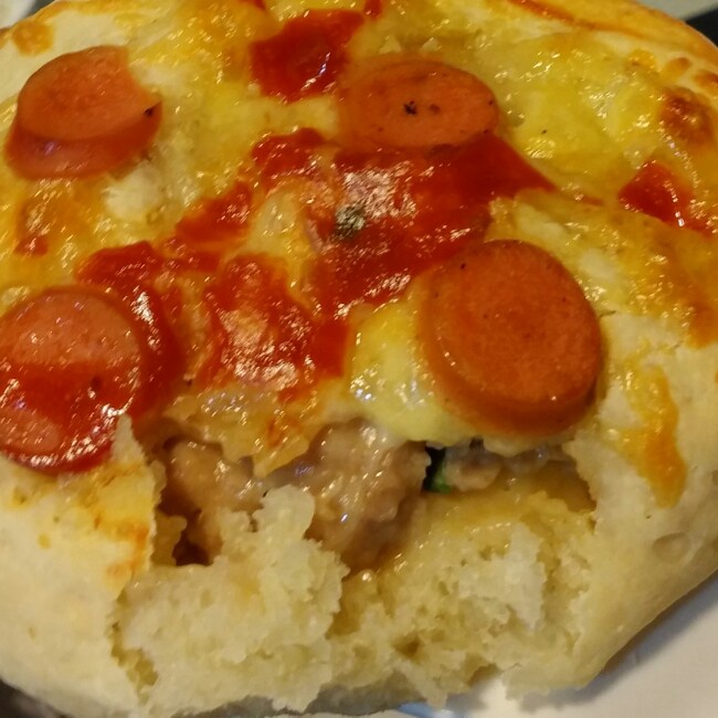 外面是披萨。里面包的包子肉。我是天才