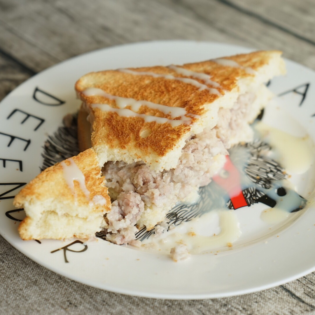 因为有个人说我这个面包做的像雪地里的...