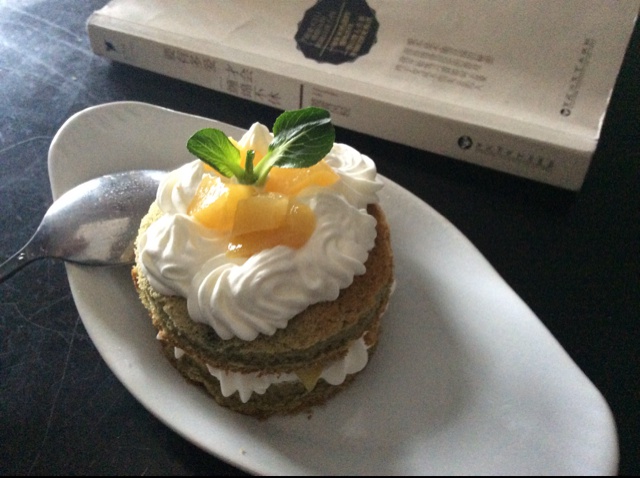最近也不知咋拉,老想吃蛋糕,好在材料冰箱都有,半小时搞定这款黄桃抹茶迷你裸蛋糕,没有薄荷叶,找了根青菜叶代替