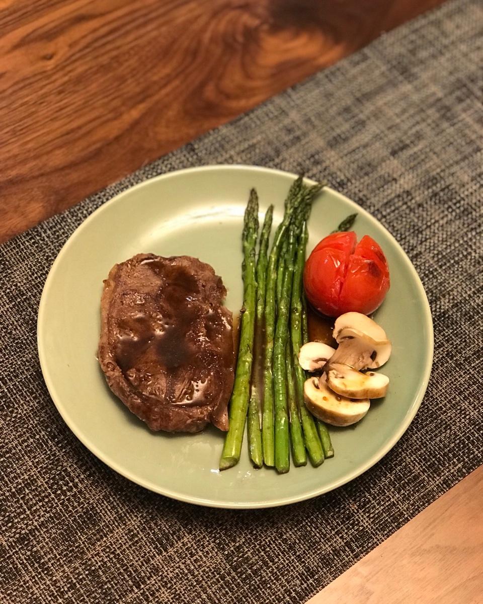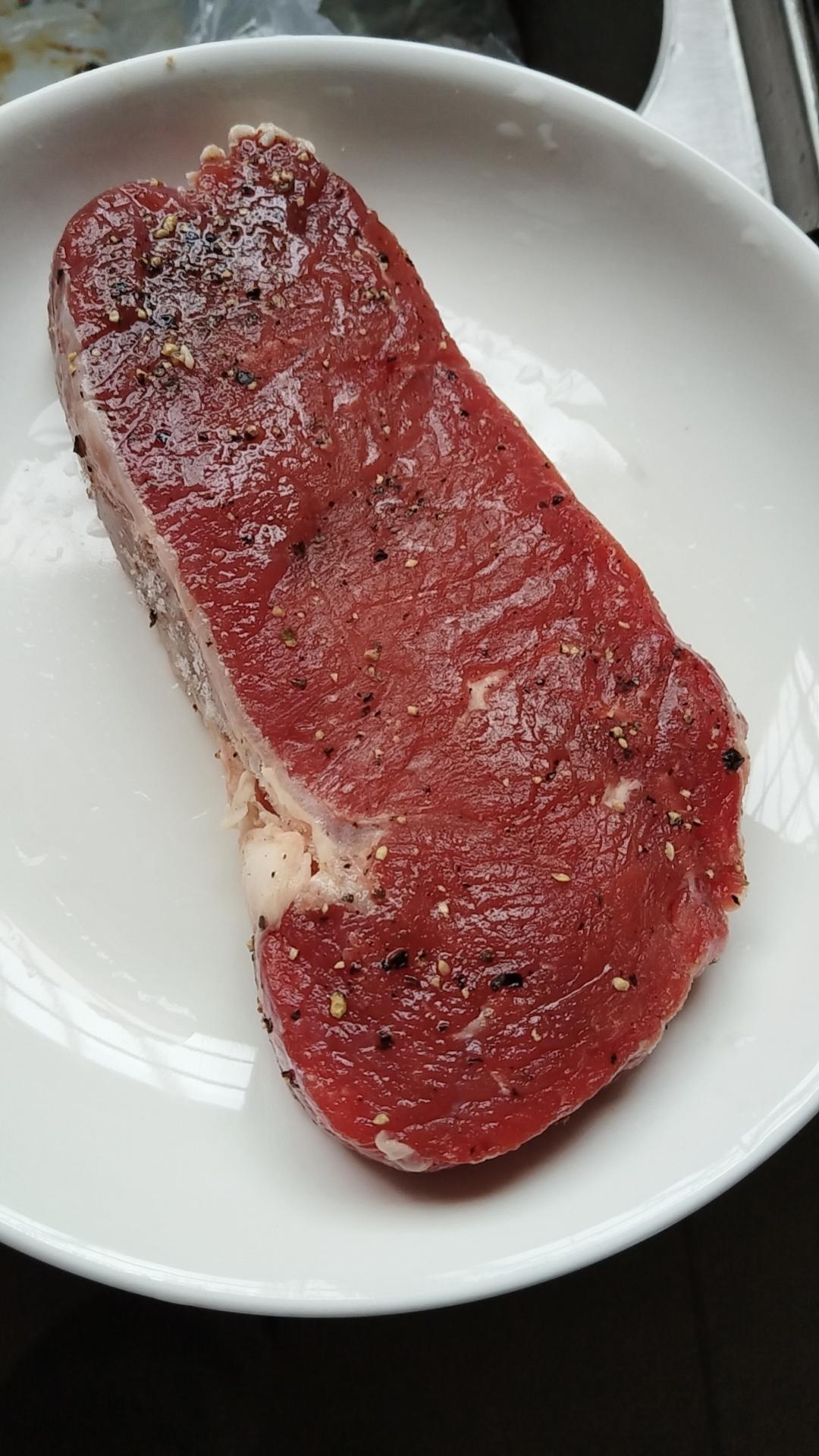 原料普通牛里脊+海盐黑胡椒=就是餐厅的牛排🥩。选对材料很重要,不用花那么多钱去买安什么,雪花什么的