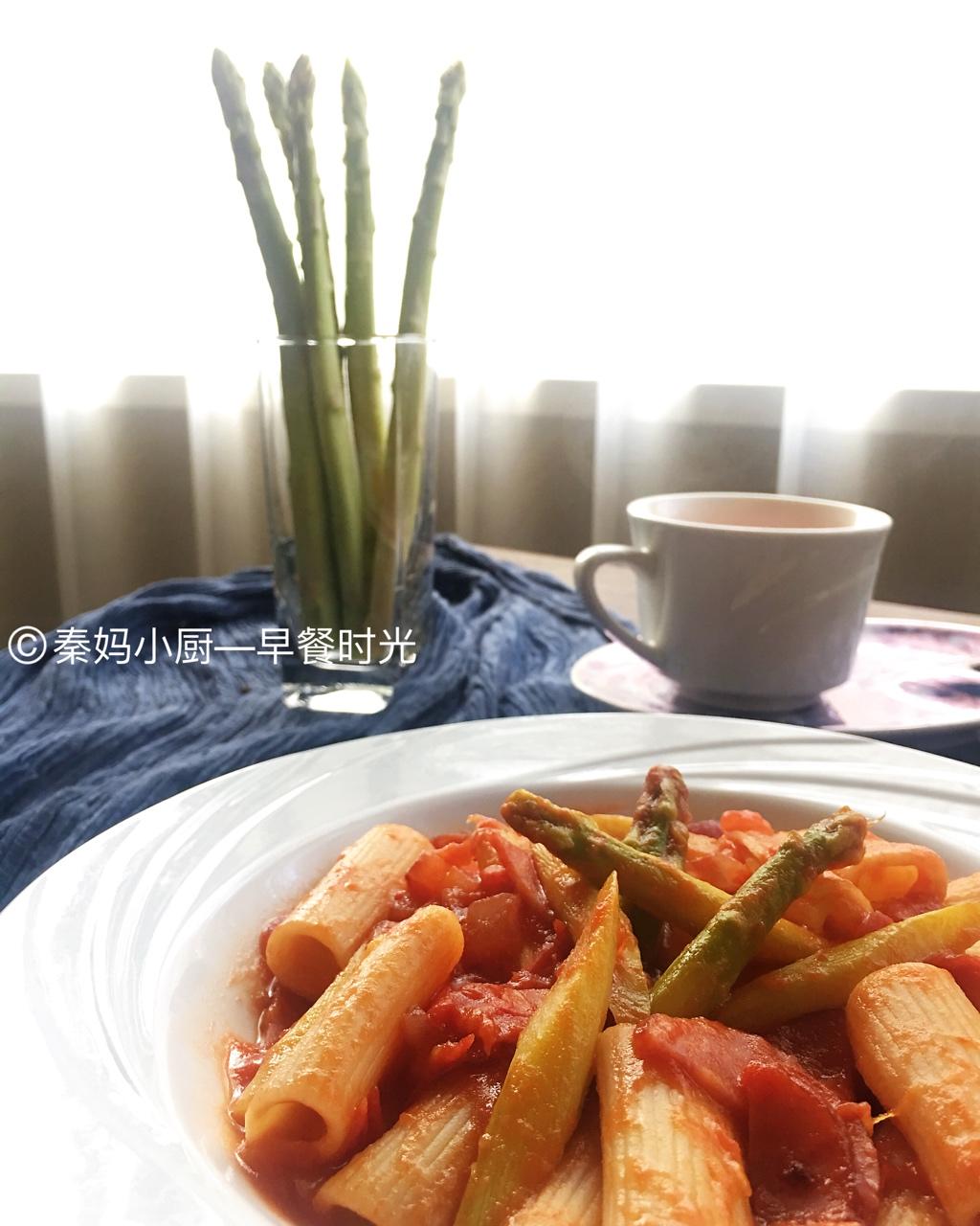 番茄芦笋通心粉。早安。