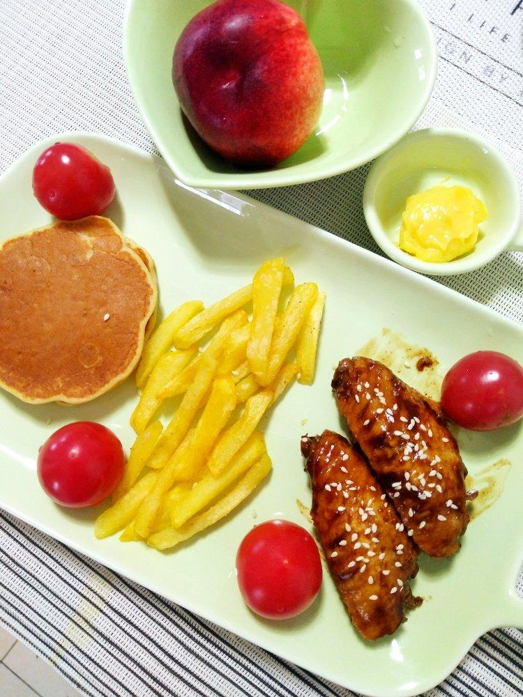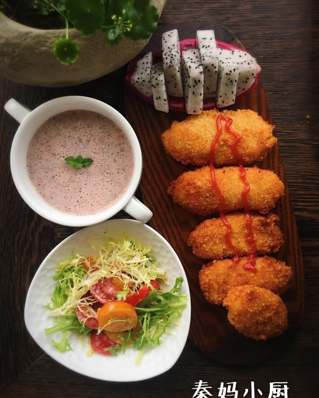 可乐饼配蔬菜沙拉🥗火龙果奶昔