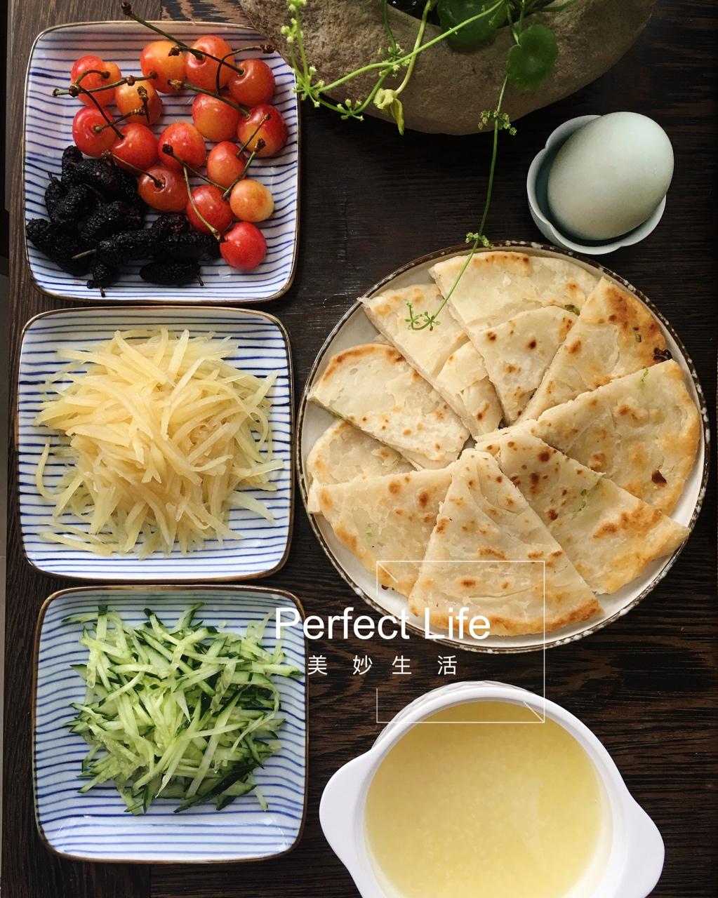今日病号饭:葱花饼配小米粥。小朋友嫌葱少,下次多放。