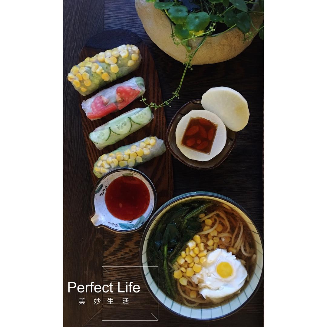 越南春卷。蜂蜜蒸萝卜。