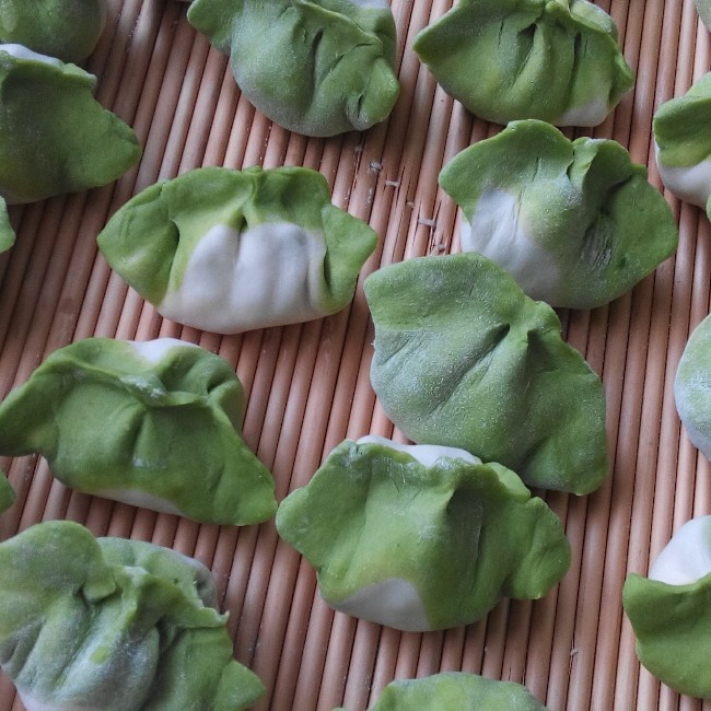 双色饺子~西红柿鸡蛋馅儿的。